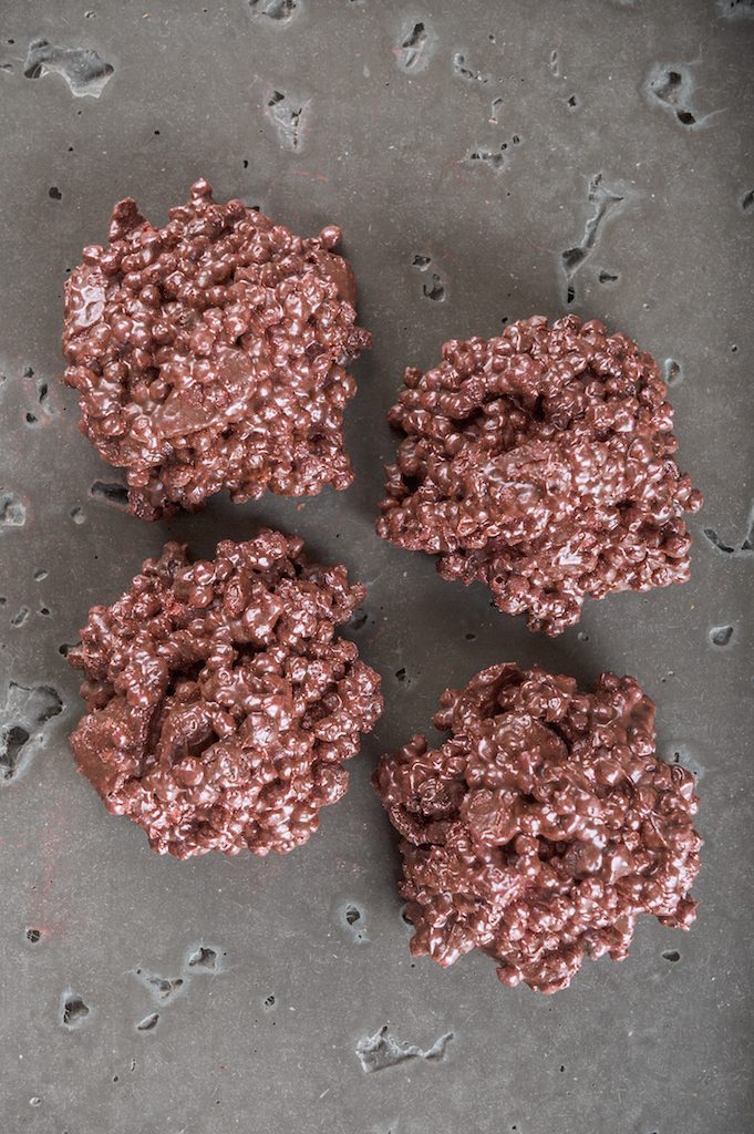 Ingredients: Milk Сhocolate (40% cacao), popped rice, sublimated strawberries and blueberries